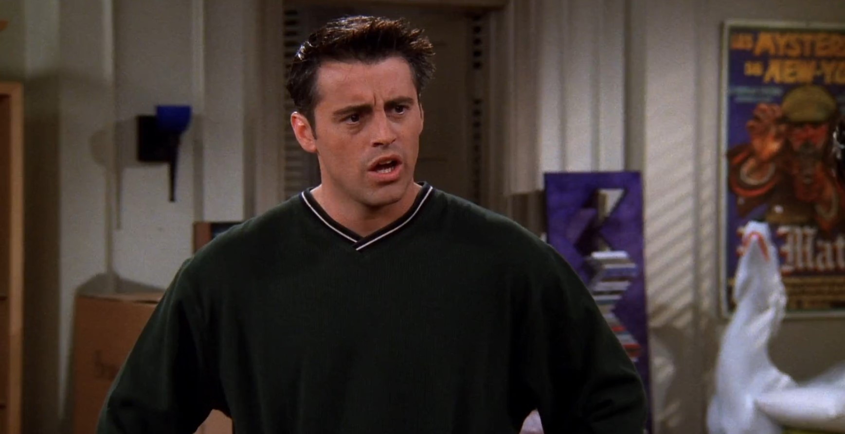5 сезон 9 серия сериала «Друзья» Росс теряет самообладание из-за того, что кто-то съел его сэндвич. Джо всячески пытается скрыть секрет Моники и Чендлера и ставит себя в неудобное положение. Фиби и Рэйчел вместе ходят на учёбу.