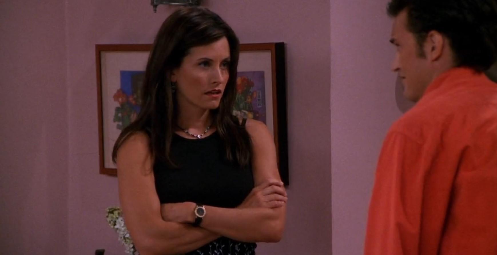 Моника не скрывает собственного разочарования и ссорится с Рэйчел. Мисс Грин поступила эгоистично и оставила помолвку Моники в тени, что окончательно разрушило энтузиазм невесты. Геллер не сомневается, что подруга специально рассказывает всем о событиях своей жизни, чтобы отвлечь их от счастливого предсвадебного праздника.