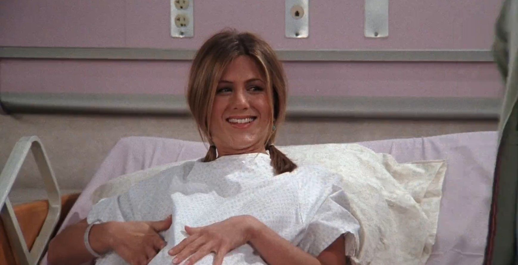 8 сезон 23 серия сериала «Друзья» Росс и Рэйчел спешат в роддом. Мать Росса даёт сыну обручальное кольцо. Моника и Чендлер принимают решение завести ребёнка.