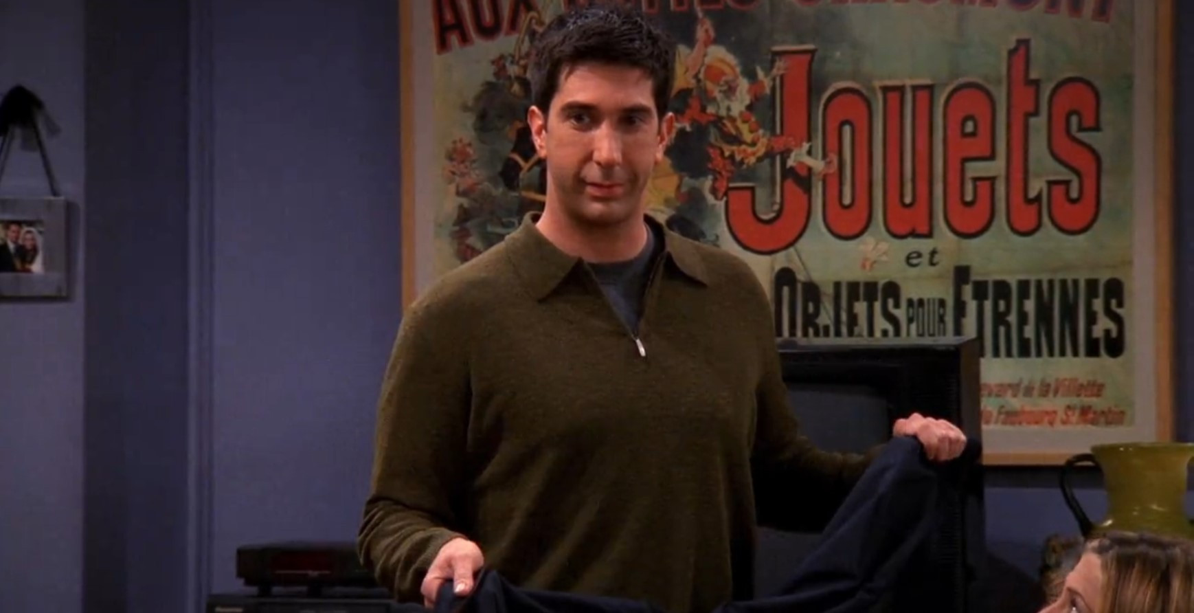 8 сезон 4 серия сериала «Друзья» демонстрирует вынужденное признание Рэйчел и Росса в том, что они действительно провели ночь вместе, не подозревая, чем конкретно это обернется. Рэйчел уверяет друзей, что Геллер сам сделал первый шаг и стал инициатором романтического досуга, но их разговор был снят на видеокамеру, так что друзья могут посмотреть кассету и узнать, как все было на самом деле.